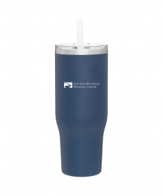 40 oz double wall 18/8 stainless steel thermal tumbler with copper vacuum insulation, stainless steel rim, dual-purpose push-on clear lid, matching sliding closure, flexible wide silicone straw, and powder coated finish