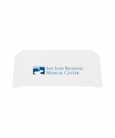 6' Standard PolyPoplin Throw style table cover with one color logo. Designed for quick and easy use while looking great. All corners are rounded meaning they will not gather and lay on the floor. Floor length on all 4 sides. Made from woven polyester. 72" L x 30" D x 29" H