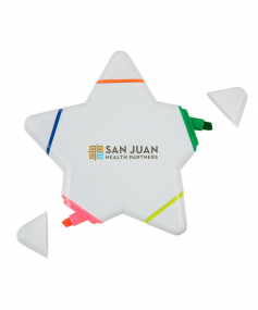 5 highlighter's in 1. Plastic case includes 5 bright neon colors, one at each point: green, blue, orange, yellow and pink. Complies with CPSIA, Prop 65. 4.5" W x 4.5" H x 0.33" D